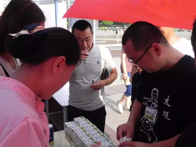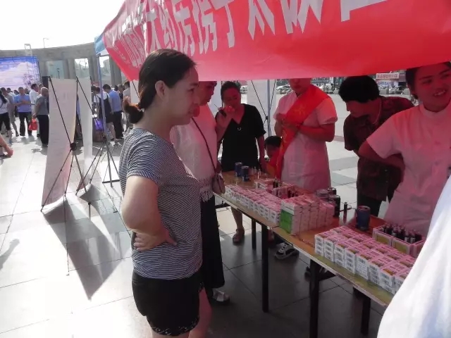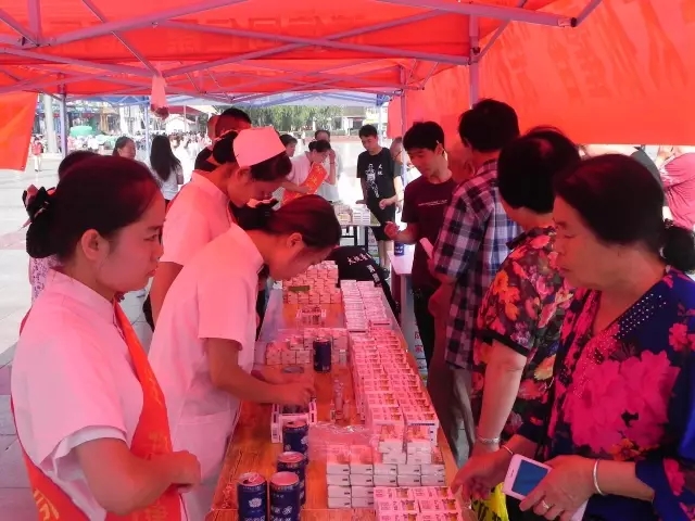 圖為:市民在現場(chǎng)免費品嘗山西同仁康大藥房提供的太極藿香正氣口服液